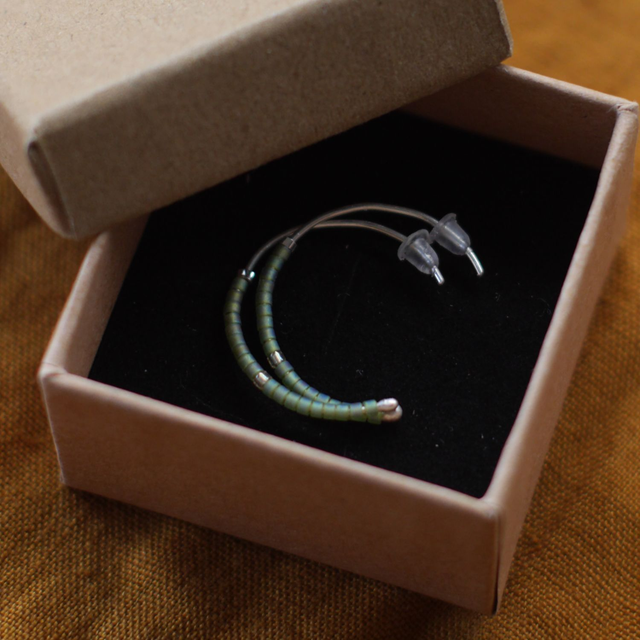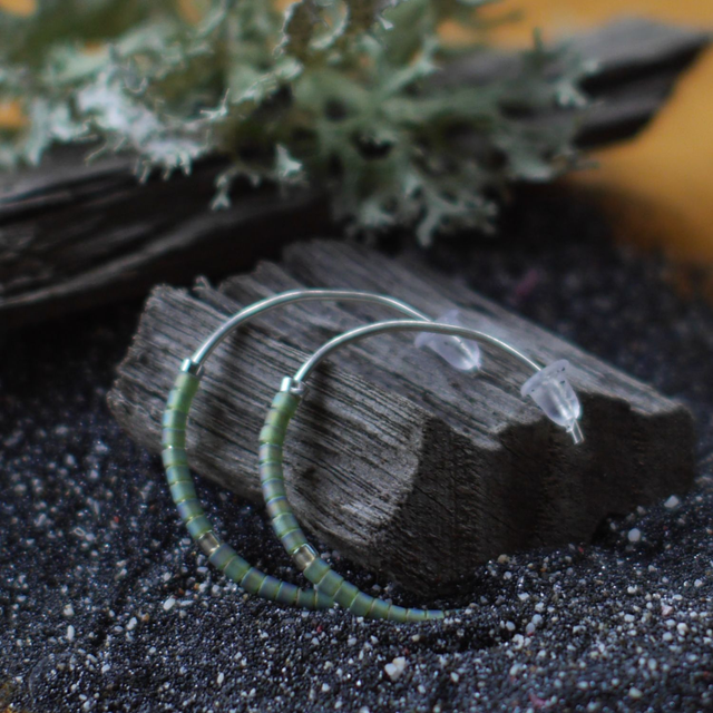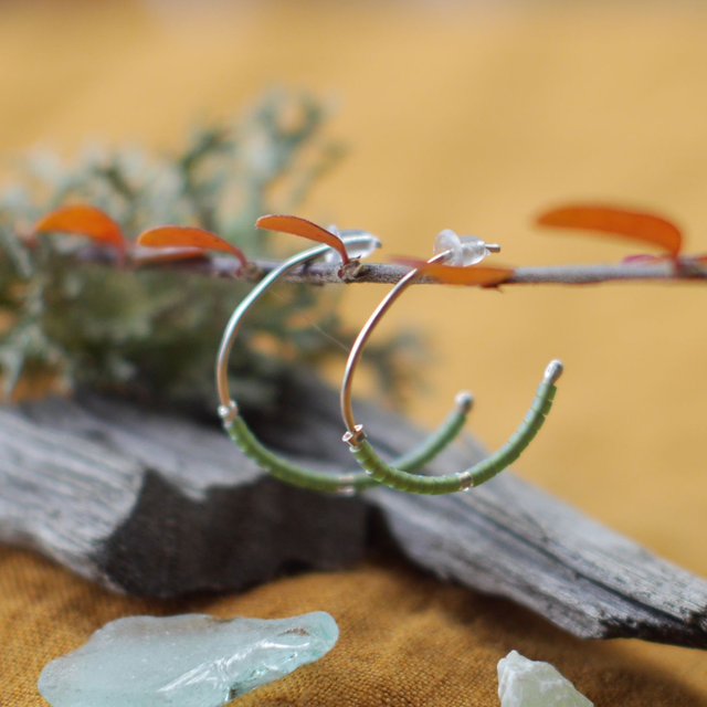 Demi-anneaux en fil d'Argent et perles Miyuki vertes et transparentes - 2,5 cm environ de hauteur - Entièrement réalisés à la main