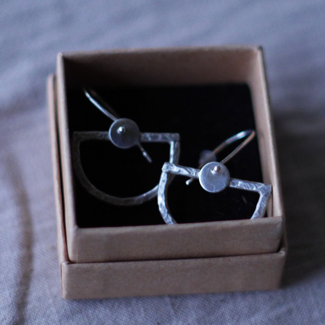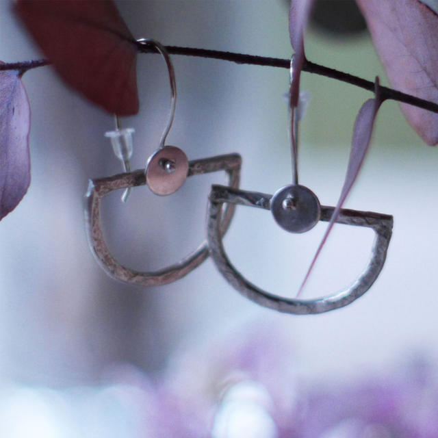 Boucles d'oreilles en Argent martelé - Largeur 2,5 cm et hauteur 2 cm - 100% faites main - Modèle unique