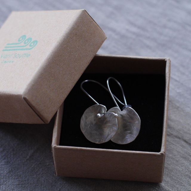 Argent 925 mat - Largeur et hauteur du nénuphar 1,7 cm environ - Hauteur totale de la boucle 3,5 cm environ - Entièrement réalisées à la main