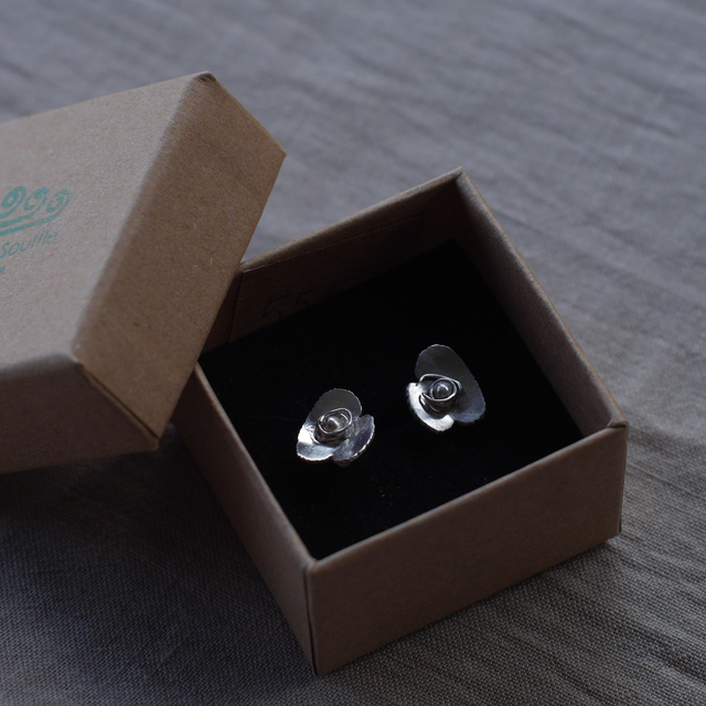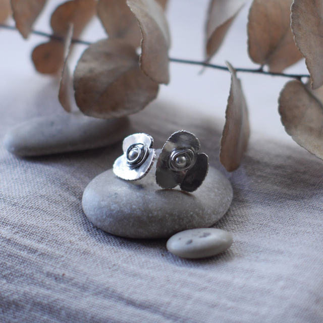 Argent 925 poli - Taille 1,5 cm /1,5 cm environ - Se fixent à l'oreille par une petite tige -100% faites main - Modèle unique