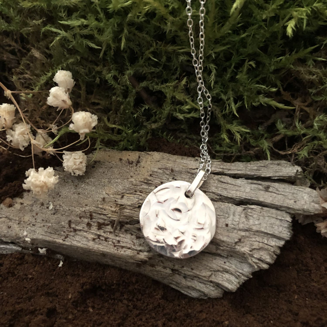 Médaille polie Argent martelé - Diamètre 1,6 cm environ - Avec chaîne 40 cm maille jaseron- Chaque médaille peut être un peu différente car réalisée entièrement à la main
