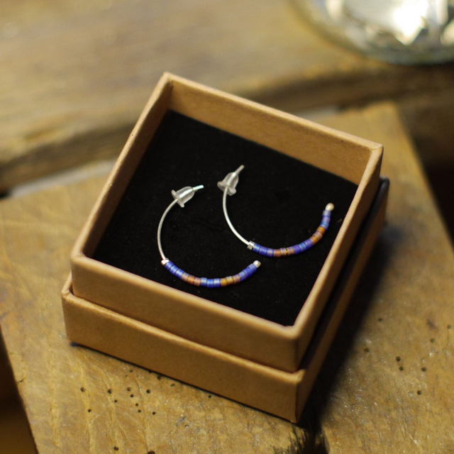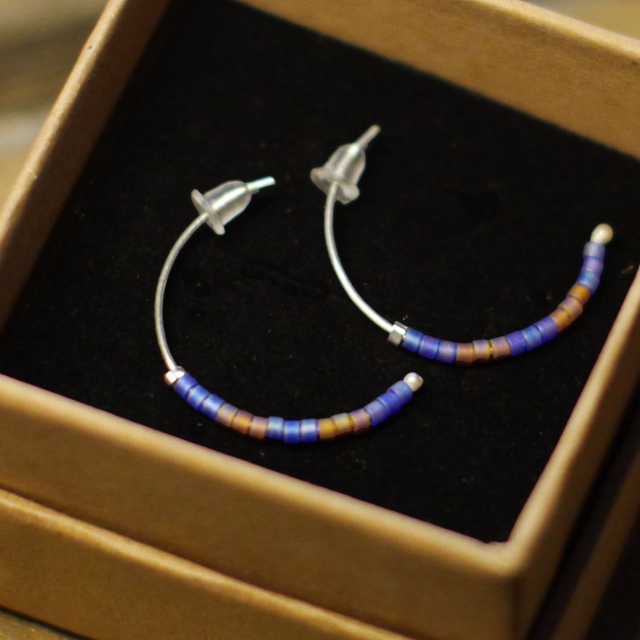 Demi-anneaux en fil d'Argent et perles Miyuki bleues et roses fauves à reflets - 2,3 cm environ de hauteur - Entièrement réalisées à la main